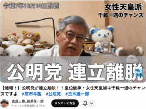 【速報!】公明党が連立離脱!!皇位継承・女性天皇派は千載一遇のチャンスですよ #高市早苗 #公明党 #玉木雄一郎 2025年10月10日に古是三春_篠原常一郎で公開されたこの動画では、「公明党が連立を離脱した」という速報 […]