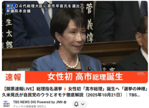- 高市早苗氏が第104代首相に選出!日本初の女性総理誕生とトランプ外交の展望【速報】【速報レポート】高市早苗氏、第104代内閣総理大臣に選出 2025年10月21日(火) 本日、衆議院本会議で実施された内閣総理大臣指名選挙において、自民党の高市早苗衆議院議員(63)が第104代内閣総理大臣に選出されまし […]