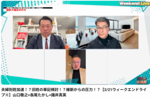 夫婦別姓加速!?旧姓の単記検討!?維新からの圧力!?【2/21ウィークエンドライブ④】山口敬之×長尾たかし×諸井真英 この動画では、高市総理(動画内の設定)による「旧姓の単記」検討指示や、自民党内の人事、安全保障政策への […]