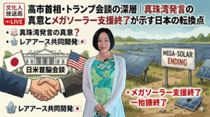 【都議会】「公金チューチュー中抜き事業と言われても仕方ないですよ」 この動画(さとうさおり都議による東京都議会の質疑)の内容を要約し、主な論点と東京都側の回答を整理しました。 この質疑では、東京都のスタートアップ支援予算 […] - 【大高未貴氏】高市首相・トランプ会談の深層|真珠湾発言の真意とメガソーラー支援終了が示す日本の転換点
