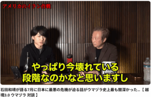 石田和靖が語る7月に日本に最悪の危機が迫る話がウマヅラ史上最も闇深かった…【 越境3.0 ウマヅラ 対談 】 この対談では、元「越境3.0」の石田和靖氏とウマヅラビデオのウマヅラ氏が、現在の国際情勢、特に中東情勢が日本に […] - 辺野古転覆事故の真相を追う:須田慎一郎×三枝玄太郎が暴く「平和学習」の歪みと人災の背景