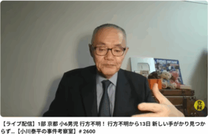 【第161回 4/5山口敬之チャンネル(YouTube+ニコ生)】 この動画は、ジャーナリストの山口敬之氏によるライブ配信(2026年4月5日放送)のアーカイブです。主な内容は、2009年の中川昭一元財務大臣の「朦朧会見 […] - 【京都・小6男児行方不明】失踪から経過していく時間、警察の「装備」が物語る深刻な事態とは?元刑事・小川泰平氏が徹底考察