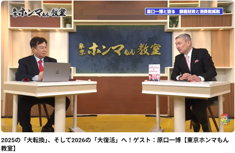 2025の「大転換」、そして2026の「大復活」へ!ゲスト:原口一博【東京ホンマもん教室】 この動画は、TOKYO MXの番組『東京ホンマもん教室』の2025年年末(12月27日公開)の放送回です。藤井聡教授が、2025年の政治・経済の振り返りと、2026年に向けた展望... -