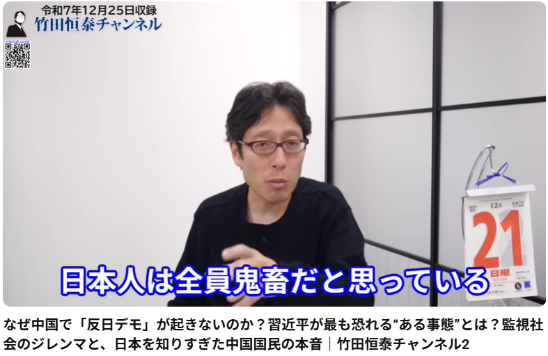 なぜ中国で「反日デモ」が起きないのか?習近平が最も恐れる“ある事態”とは?監視社会のジレンマと、日本を知りすぎた中国国民の本音|竹田恒泰チャンネル2 この動画は、竹田恒泰氏が「なぜ現在の中国で大規模な反日デモが起きないのか」という疑問につい... -