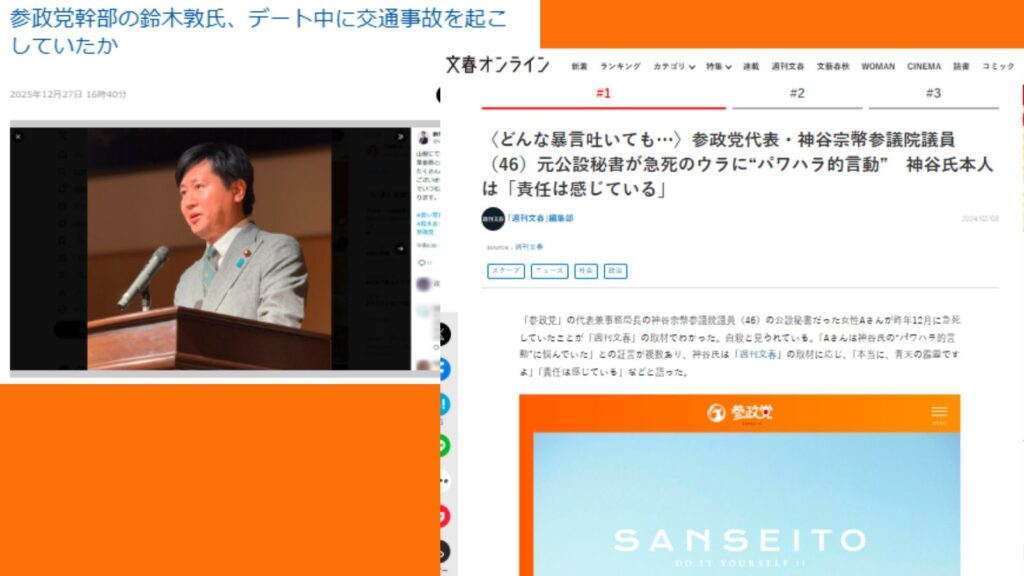 参政党・鈴木敦氏の不倫疑惑と神谷代表元秘書の三回忌|組織の倫理観を問う