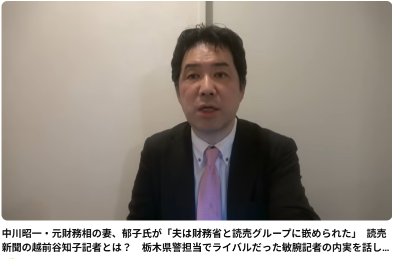 中川昭一・元財務相の妻、郁子氏が「夫は財務省と読売グループに嵌められた」 読売新聞の越前谷知子記者とは? 栃木県警担当でライバルだった敏腕記者の内実を話します。 この動画は、元産経新聞記者の三枝玄太郎氏が、SNSで話題となった中川郁子氏(中...