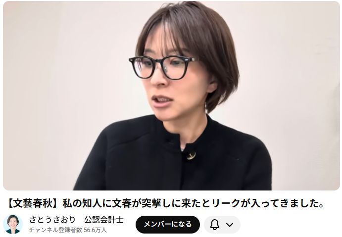 【文藝春秋】私の知人に文春が突撃しに来たとリークが入ってきました。 この動画は、公認会計士のさとうさおりさんが、週刊誌の取材手法と東京都議会での出来事について語るものです。 1. 週刊誌「文藝春秋」への抗議 さとうさんは、「文藝春秋」(文春)... -