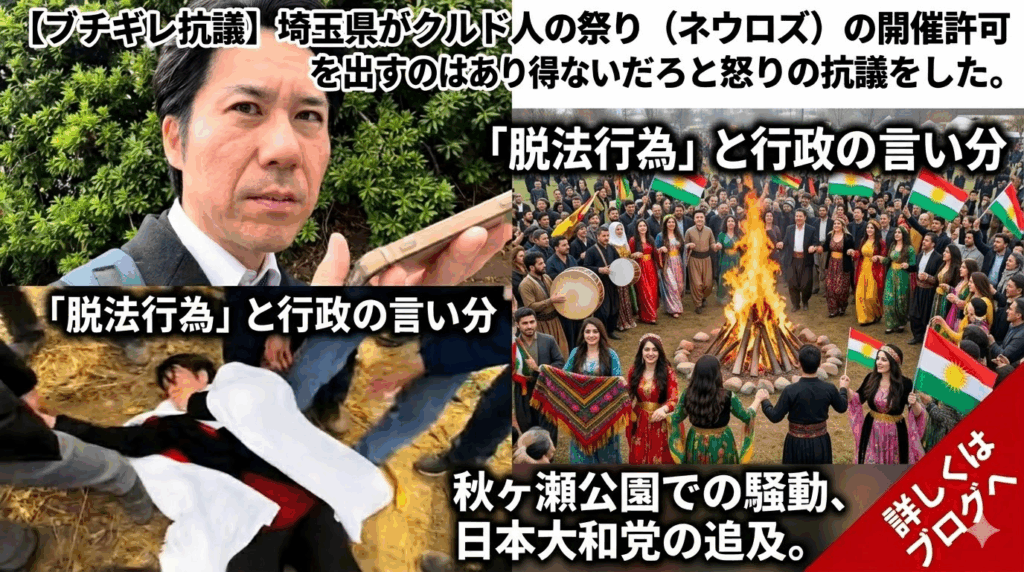 埼玉県・秋ヶ瀬公園のクルド人祭り「ネウロズ」開催問題。日本大和党・河合ゆうすけ氏が指摘する「脱法行為」と行政の言い分