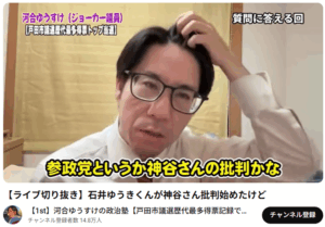 高市トランプ会談がエグすぎた件と「ヤバイ法律」が来た件 このYouTube動画は、ねずみチャンネルで公開されており、高市氏とトランプ氏の会談内容と、高市政権が閣僚に出した政策指示書について解説・批判しています。 1. 高 […] - 【河合ゆうすけ】石井雄己氏の意見を否定!神谷独裁体制は必要