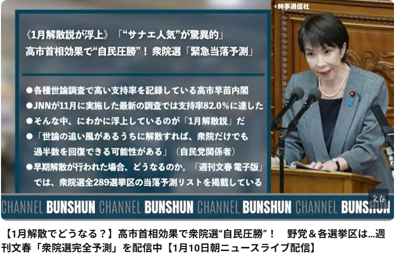 【1月解散でどうなる?】高市首相効果で衆院選“自民圧勝”! 野党&各選挙区は…週刊文春「衆院選完全予測」を配信中【1月10日朝ニュースライブ配信】