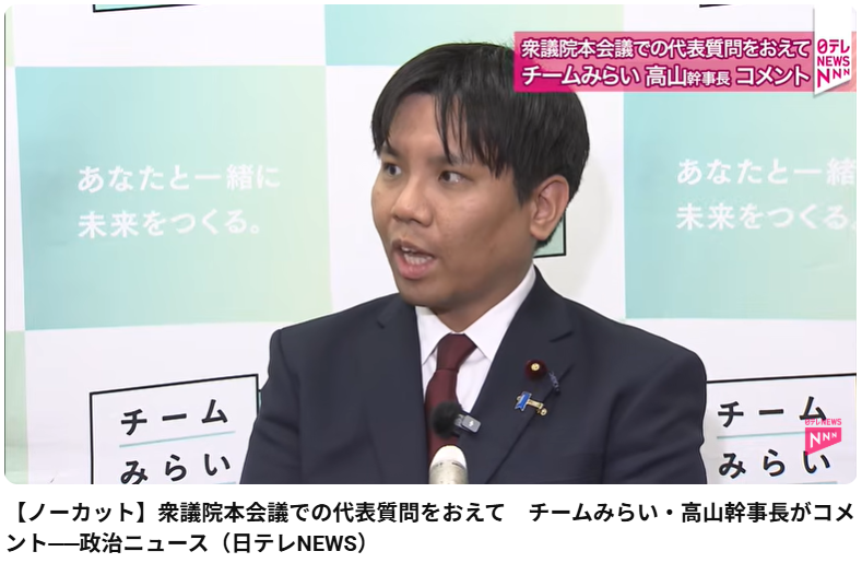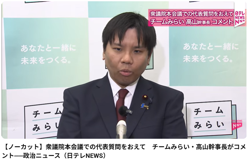 【ノーカット】衆議院本会議での代表質問をおえて チームみらい・高山幹事長がコメント──政治ニュース(日テレNEWS)