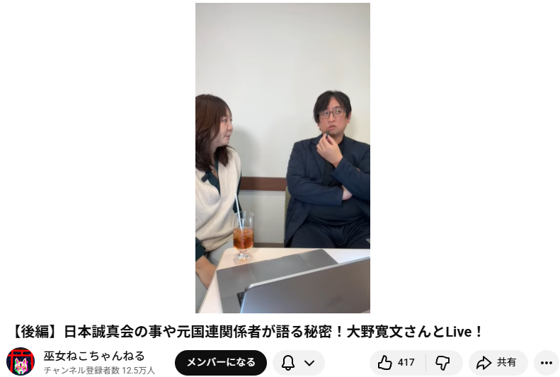 動画の【後編】において、大野寛文さんが「日本誠真会」との関わりや、同会に対する自身のスタンスについて詳しく語っている内容は以下の通りです。