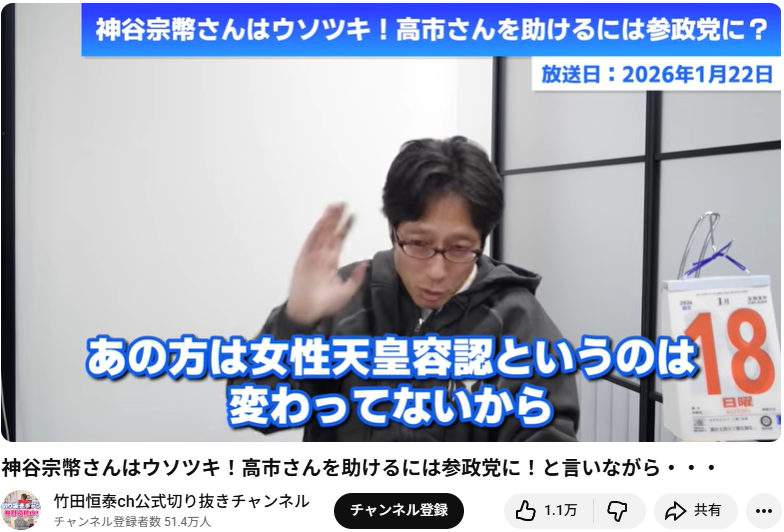 この動画は、竹田恒泰氏が参政党の神谷宗幣氏やその手法について批判的に語っている内容です。
