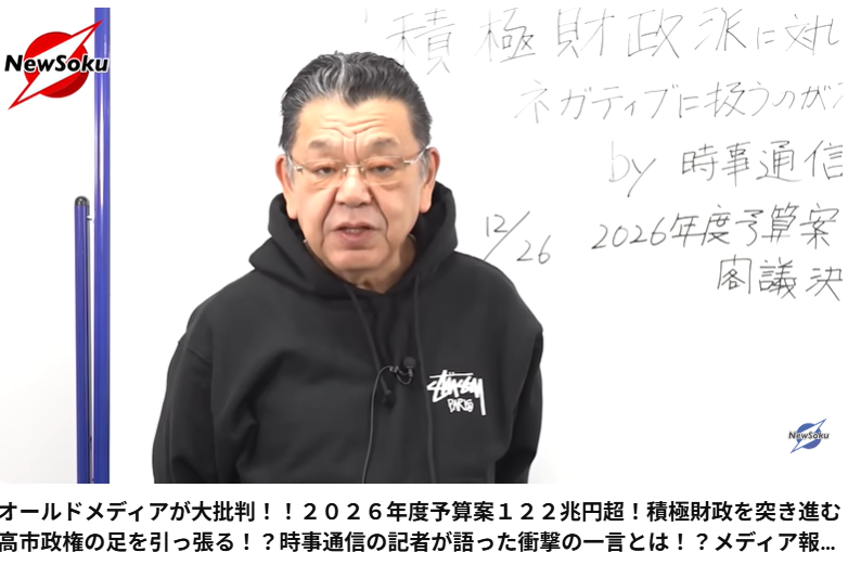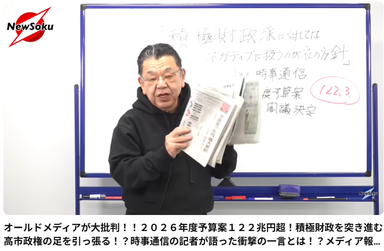 この動画は、ジャーナリストの須田慎一郎氏が、2026年度予算案(122兆円超)の閣議決定と、それに対する「オールドメディア」の報道姿勢について解説したものです。