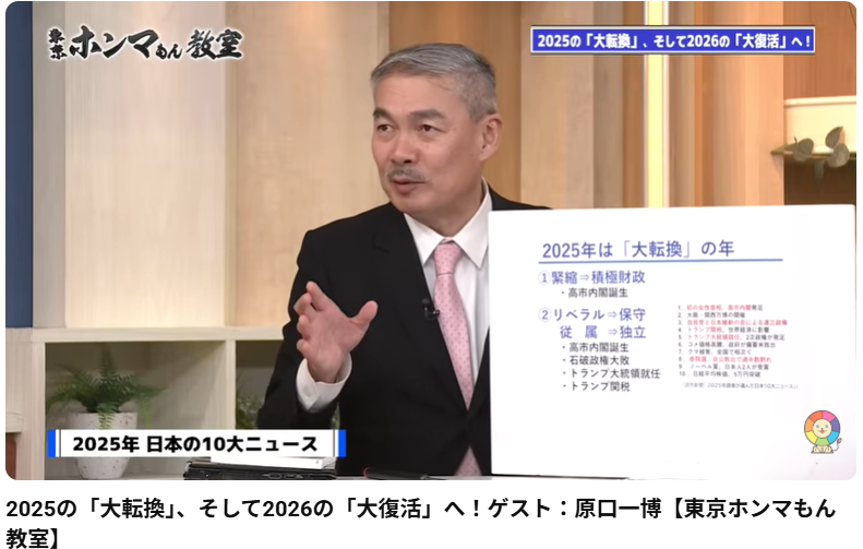 この動画は、TOKYO MXの番組『東京ホンマもん教室』の2025年年末(12月27日公開)の放送回です。藤井聡教授が、2025年の政治・経済の振り返りと、2026年に向けた展望について解説しています。