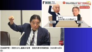 日本保守党・河村たかし議員が会見 百田代表を刑事告訴(2025年10月3日) この動画は、日本保守党の河村たかし議員が、百田直樹代表に対して刑事告訴を行ったことに関...