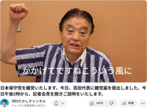 日本保守党を離党いたします。今日、百田代表に離党届を提出しました。今日午後2時から、記者会見を開きご説明をいたします。 この動画は、河村たかし氏(チャンネル名...