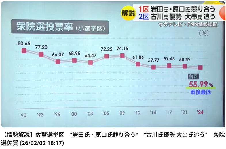 この動画は、2026年2月にサガテレビで放送された衆議院選挙・佐賀選挙区の情勢解説に関するニュースです。