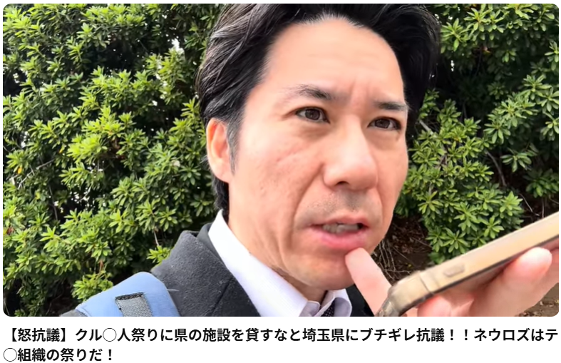 この動画は、埼玉県戸田市議会議員の河合ゆうすけ氏が、埼玉県営の秋ヶ瀬公園で開催予定のクルド人の祭り(ネウロズ)に対し、開催許可を出すべきではないと埼玉県や公園緑地協会へ電話で抗議を行っている様子を収めたものです。