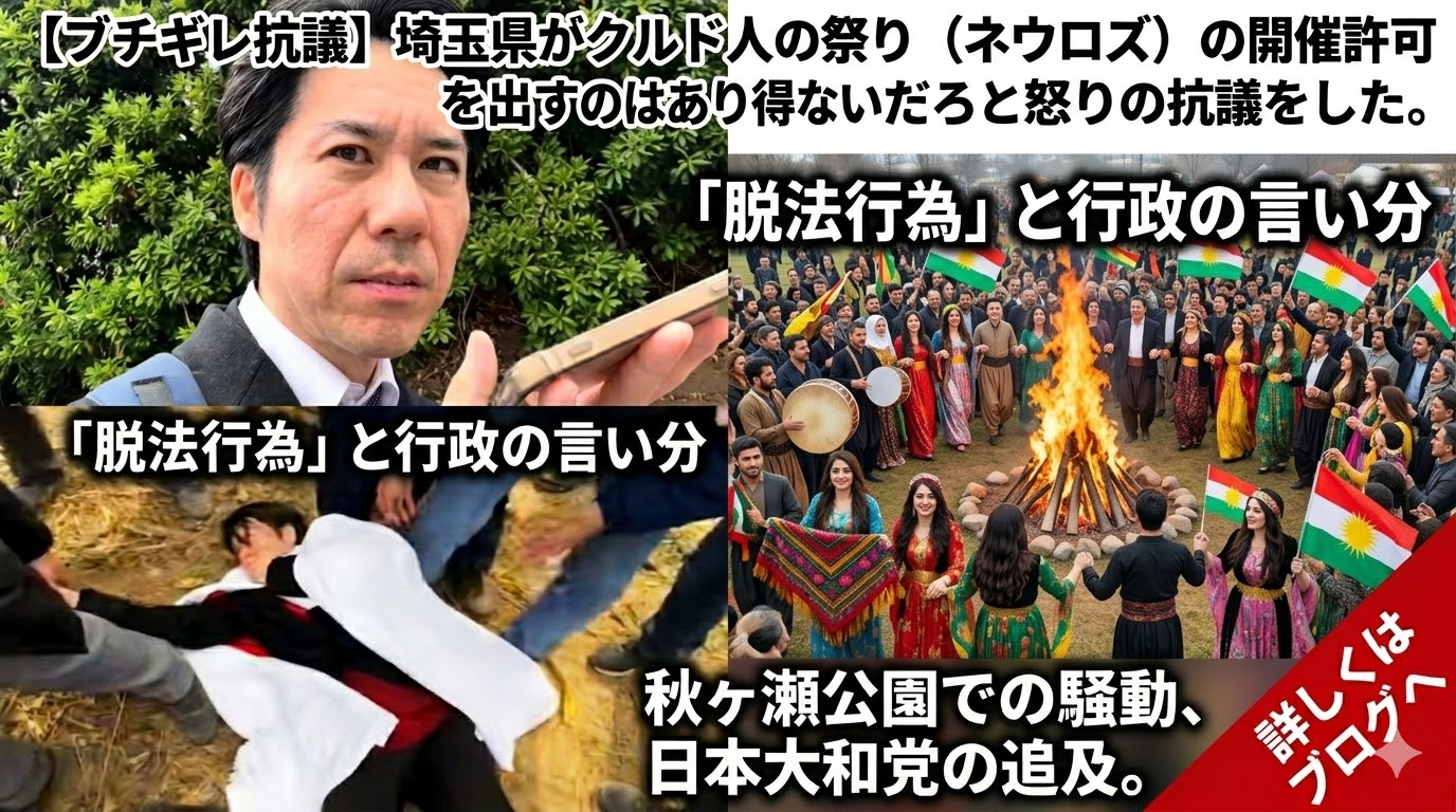 […] あわせて読みたい 埼玉県・秋ヶ瀬公園のクルド人祭り「ネウロズ」開催問題。日本大和党・河合ゆうすけ氏が指摘する「脱法… 【ブチギレ抗議】埼玉県がクルド人の祭り(ネウロ […]