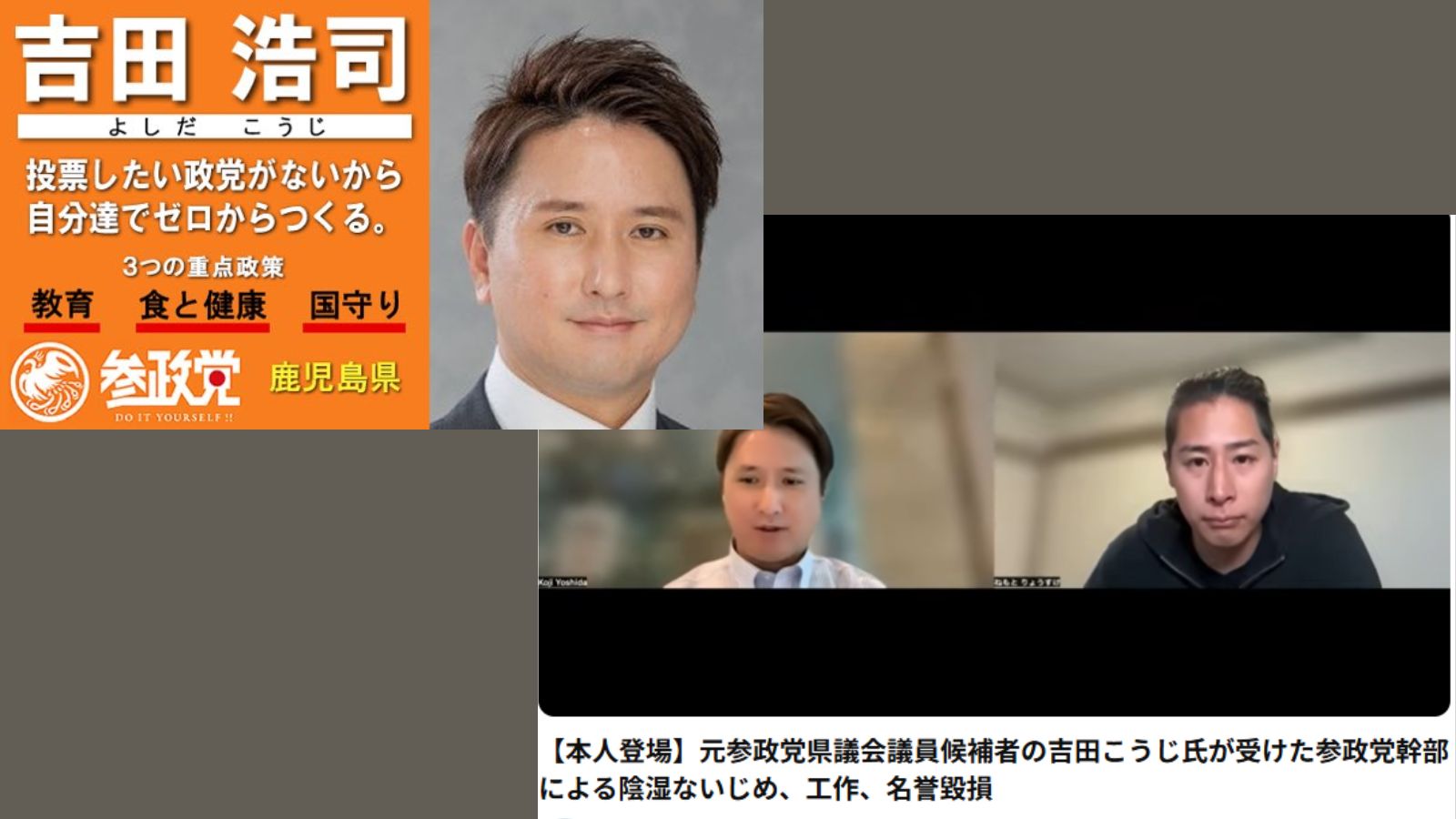 【本人登場】元参政党県議会議員候補者の吉田こうじ氏が受けた参政党幹部による陰湿ないじめ、工作、名誉毀損