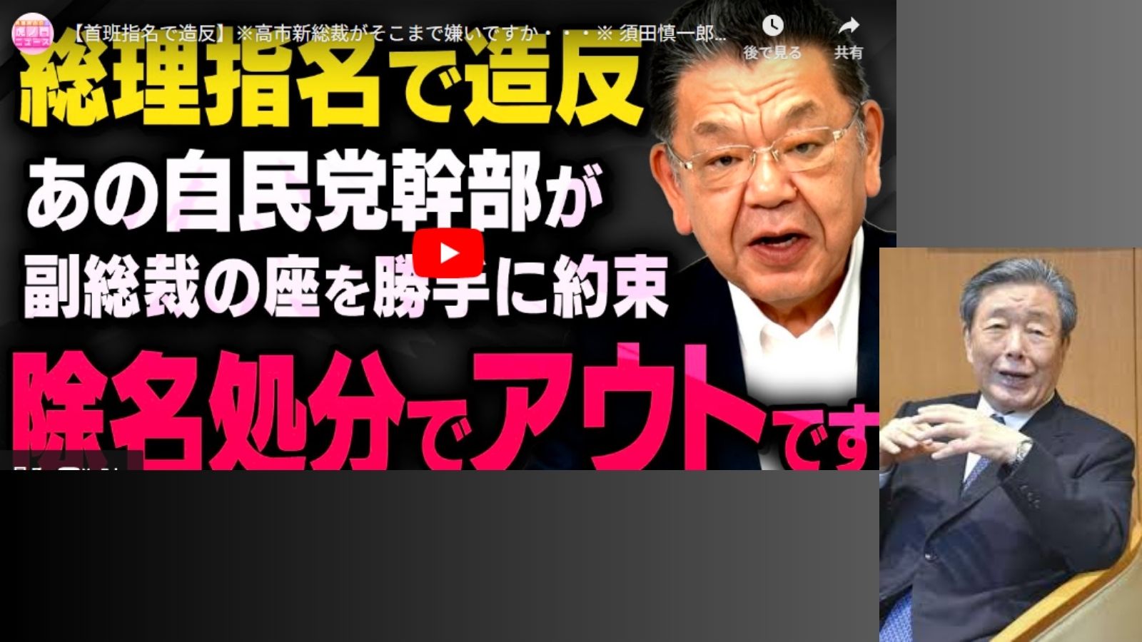 【首班指名で造反】※高市新総裁がそこまで嫌いですか・・・※ 須田慎一郎さんが自民党内で起きているとんでもない裏切り行為について話してくれました
