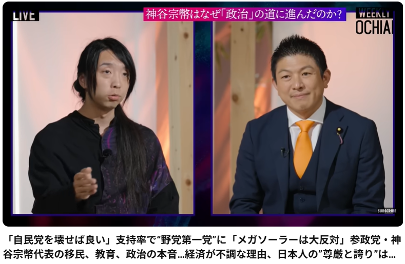 「自民党を壊せば良い」支持率で“野党第一党”に「メガソーラーは大反対」参政党・神谷宗幣代表の移民、教育、政治の本音…経済が不調な理由、日本人の”尊厳と誇り”はどう取り戻す?『創憲』への思い【落合陽一】