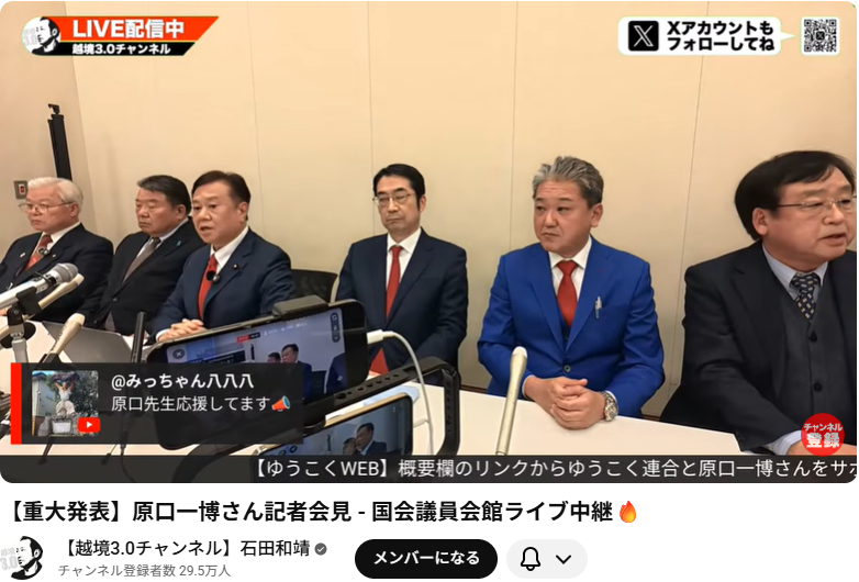 原口一博氏が「ゆうこく連合」を政党化!高市早苗氏との“寅さんとさくら”の絆、そして日本独立への覚悟... 【重大発表】原口一博さん記者会見 - 国会議員会館ライブ中継🔥 この動画は、2026年1月20日に行われた原口一博衆議院議員による記者会見のライブ中継です。 原口...