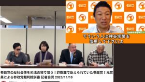 参政党に「反社会性」の烙印か? 元党員が訴える詐欺裁判 控訴審の全貌と1億円超の政治資金疑惑を徹底解説 参政党の反社会性を司法の場で問う!詐欺罪で訴えられていた参政党!元党員による参政党裁判控訴審 記者会見 2025/11/10 この動画は、元党員による参政党に対する詐欺裁...