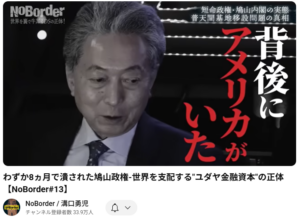 この動画は、「わずか8ヵ月で潰された鳩山政権-世界を支配する”ユダヤ金融資本”の正体【NoBorder#13】」というタイトルで、チャンネル名「NoBorder / 溝口勇児」から2025年9月20日に公開されたものです。