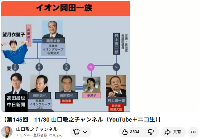 - 国益侵害の主張: 岡田氏とその兄弟3人が共謀し、高市早苗氏の支持率を下げるだけでなく、日本の国益を売り飛ばしているという重大な疑惑を提起しています [04:18]。