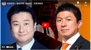 参政党の代表 神谷宗幣氏 は、公の場で和田氏を支援する演説を行うために宮城県を少なくとも2回訪れており、その動きは選挙情勢に積極的に関与する姿勢を示すものと捉えられている。 (Facebook)