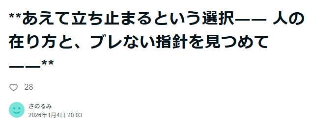 あえて立ち止まるという選択。人の在り方と、ブレない指針を見つめて 。|さのるみ ※本稿は、誰かを告発するための文章ではありません。また、特定の思想や信仰を押しつけるものでもありません。