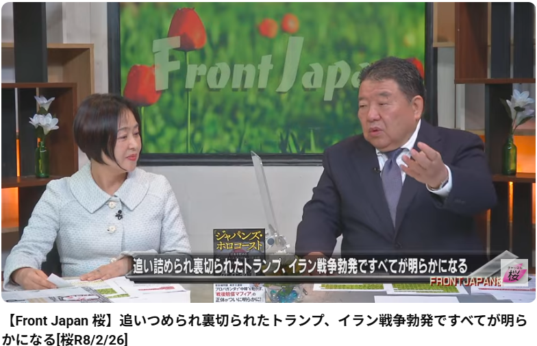 【Front Japan 桜】追いつめられ裏切られたトランプ、イラン戦争勃発ですべてが明らかになる[桜R8/2/26] この動画は、2026年2月26日に「新日本文化チャンネル桜」で配信されたライブ番組です。トランプ前大統領を巡る情勢、イラン戦争の懸念、そして「エプ... -