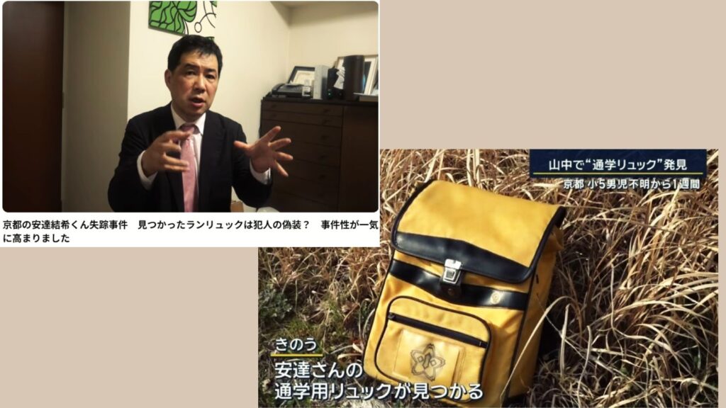 【京都・南丹市】安達結希くん失踪事件の謎:発見されたランリュックは「偽装」か?元刑事が指摘する事件性の高まりと最新状況