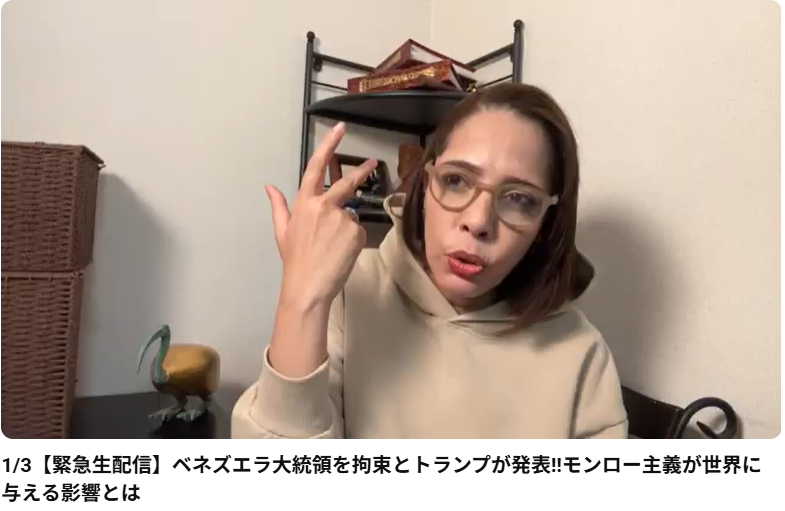 1/3【緊急生配信】ベネズエラ大統領を拘束とトランプが発表‼︎モンロー主義が世界に与える影響とは この動画は、フィフィ氏による2026年1月3日の緊急生配信で、トランプ大統領によるベネズエラのマドゥロ大統領拘束のニュースと、それが世界情勢に与... -