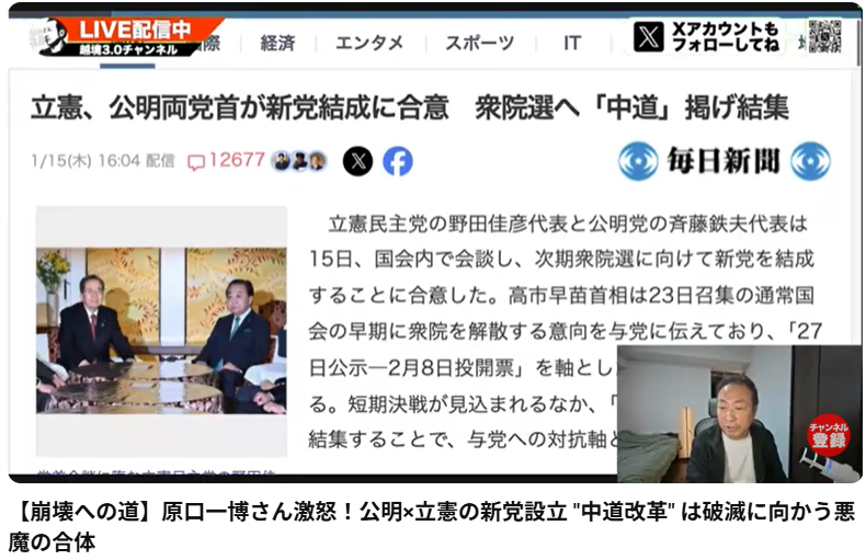 【崩壊への道】公明×立憲の新党“中道改革”は「悪魔の合体」!原口一博議員が激怒する理由と、今こそ必要な「知識武装」とは