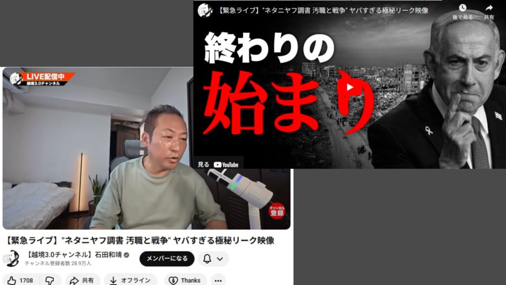 【緊急ライブ】"ネタニヤフ調書 汚職と戦争" ヤバすぎる極秘リーク映像 このYouTube動画は、【越境3.0チャンネル】石田和靖氏によるライブ配信です。 この動画は、石田氏が視聴したドキュメンタリー映画「ネタニヤフ調書 汚職と戦争(BB Files)」の感想と... -