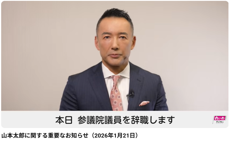 山本太郎に関する重要なお知らせ(2026年1月21日) この動画は、れいわ新選組代表の山本太郎氏が、2026年1月21日に公開した「重要なお知らせ」です。主な内容は以下の通りです。 主な内容 1. 参議院議員の辞職と無期限の活動休止 山本氏は、本日付で参議院... -