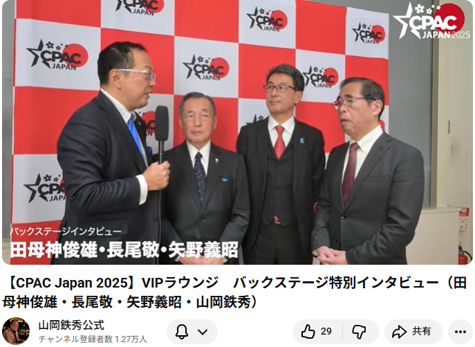 【CPAC Japan 2025】VIPラウンジ バックステージ特別インタビュー(田母神俊雄・長尾敬・矢野義昭・山岡鉄秀) 本動画は、CPAC Japan 2025のVIPラウンジで、田母神俊雄氏、長尾敬氏、矢野義昭氏、山岡鉄秀氏の4名が、米国の専門家との議論(マクファーラ... -