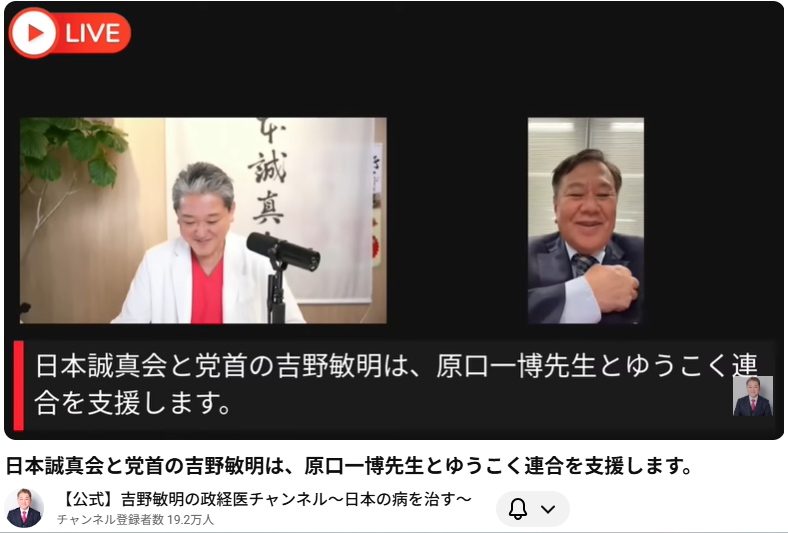 吉野敏明氏が緊急表明!「日本誠真会」として原口一博氏の「ゆうこく連合」を全力支援へ