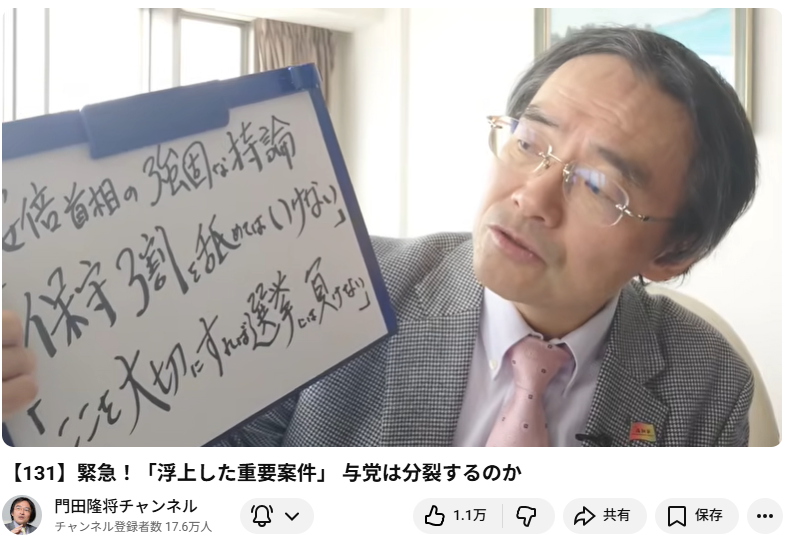 【131】緊急!「浮上した重要案件」 与党は分裂するのか この動画ではジャーナリストの門田隆将氏が、自民党と日本維新の会の連立政権下で浮上している、旧姓の「単独表記(単記)」を巡る問題が、与党分裂を招きかねない深刻な事態であると警鐘を鳴らして... -