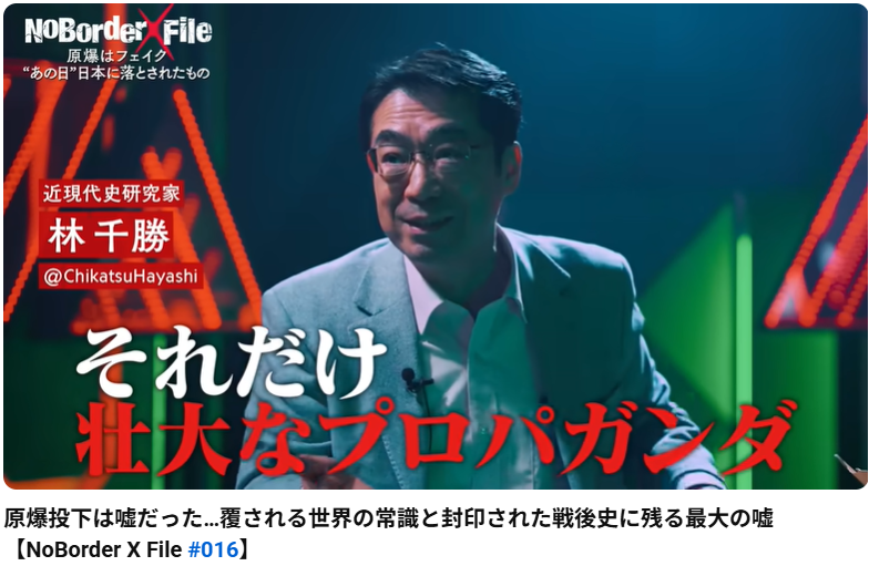 原爆投下は嘘だった…覆される世界の常識と封印された戦後史に残る最大の嘘【NoBorder X File #016】 この動画は、歴史研究家の林千勝氏をゲストに迎え、「広島・長崎への原爆投下はフェイク(偽装)だった」という主張を検証する内容です。 動画の主... -