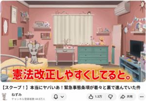 【スクープ!】本当にヤバいあ!緊急事態条項が着々と裏で進んでいた件 この動画は、ねずみチャンネルのと題されたもので、主に自由民主党(自民党)の憲法改正草案に盛...