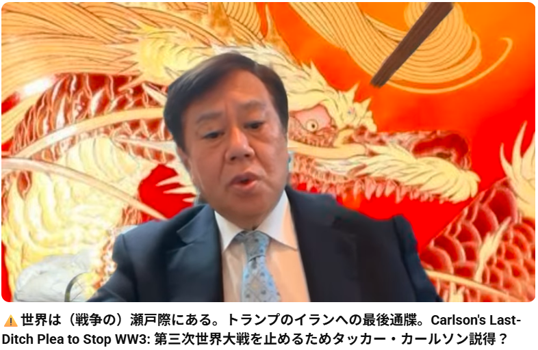 ⚠️世界は(戦争の)瀬戸際にある。トランプのイランへの最後通牒。Carlson’s Last-Ditch Plea to Stop WW3: 第三次世界大戦を止めるためタッカー・カールソン説得?
